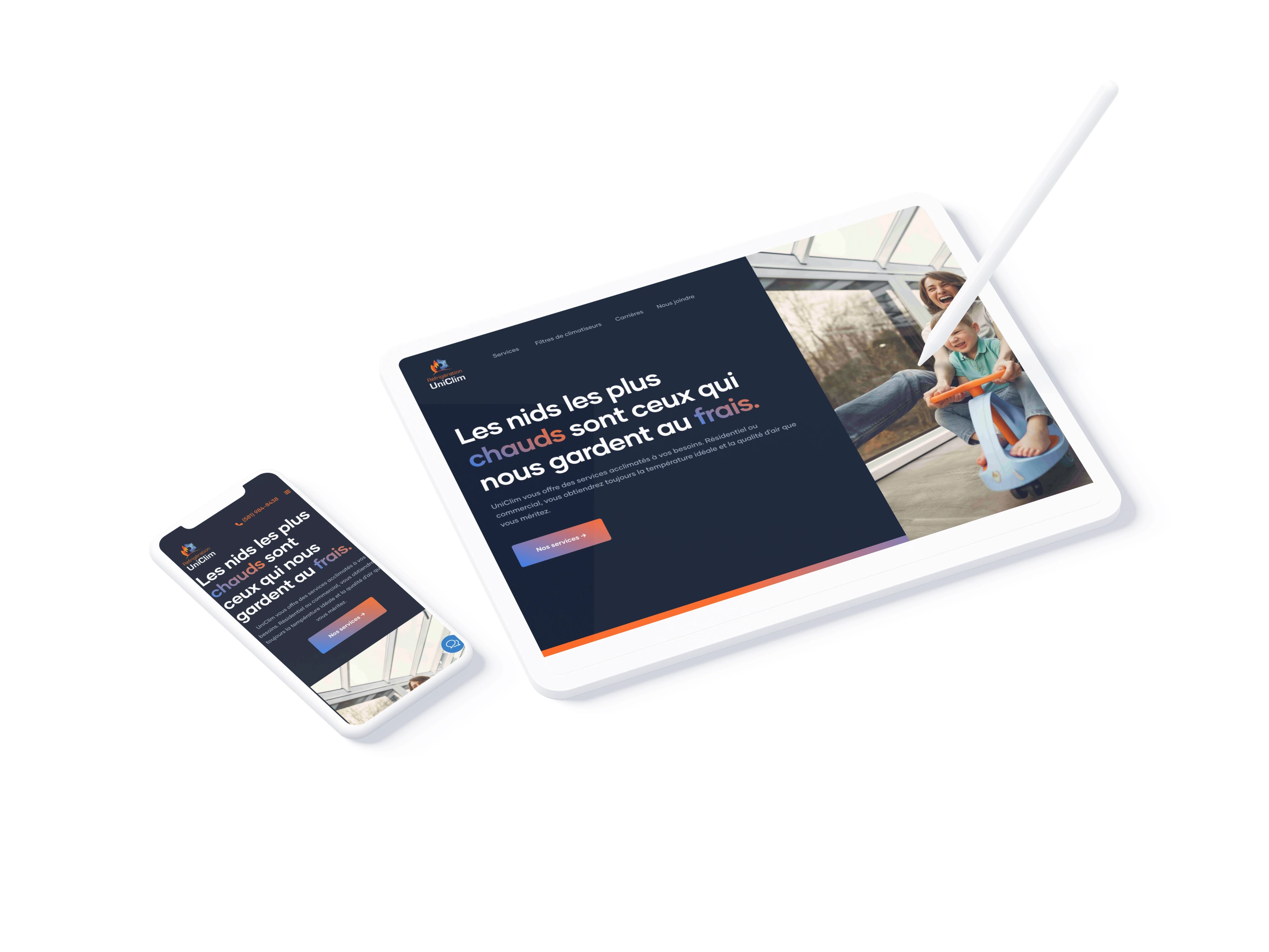 Establish a family-oriented—cosy home— imagery and exploit the theme of hot and cold in catchy interactive animations that encourage conversion. Notably, in the call and quote buttons, as well as in the immersive call-to-action sections.